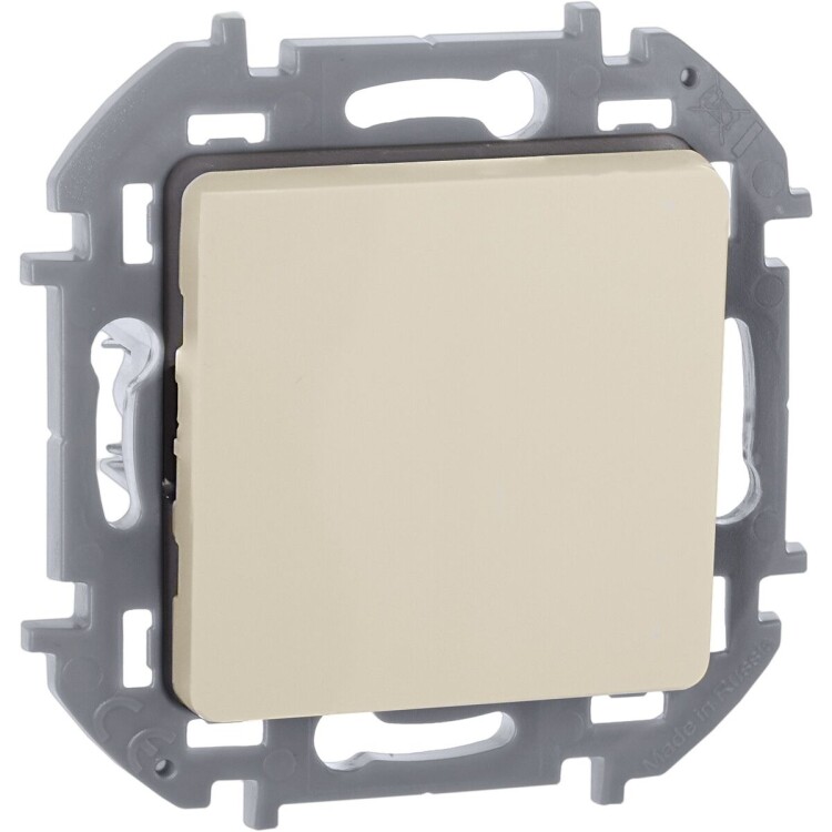 Выключатель кнопочный одноклавишный скрытого монтажа Inspiria, цвет "Слоновая кость", номинальный ток 6А, напряжение ~250В, безвинтовые зажимы. Устанавливается в жилых и общественных помещениях для управления импульсными реле, звонками и т.п.