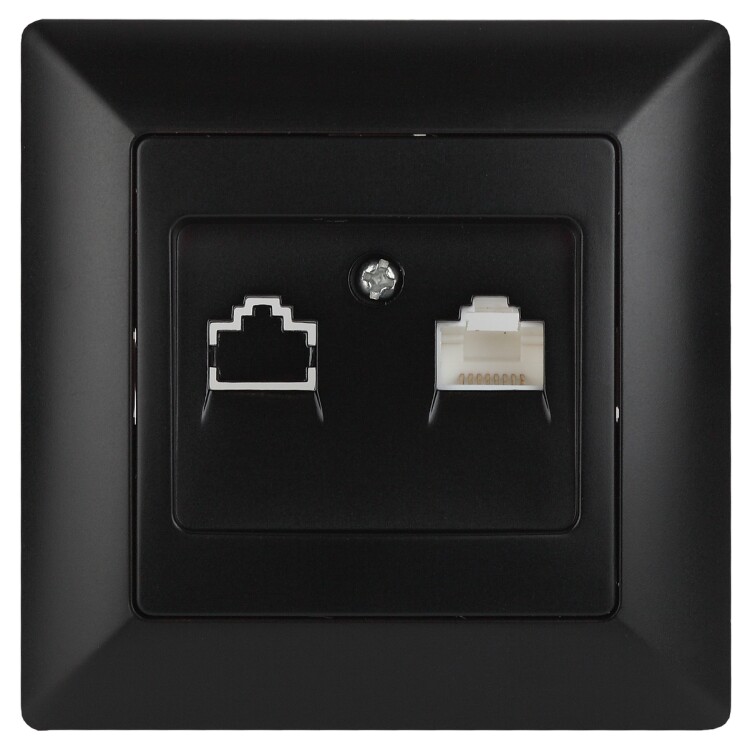 Розетка RJ45 серии Intro Solo скрытой установки цвет антрацит 4-303-05. Розетка выполнена из термопласта, укомплектована одноместной рамкой. Для установки 2-х и более устройств в несколько подрозетников в ряд дополнительно используются многоместные рамки: 2-х постовая - 4-502-хх, 3-х постовая 4-503-хх, 4-х постовая - 4-504-хх (где хх - цветовой код: 01 - белый, 02 - слоновая кость, 03 - алюминий, 04 - шампань, 05 - антрацит, 10 - венге, 11 - сосна).