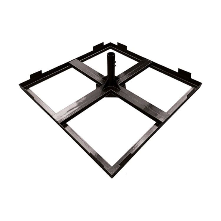 Основание под утяжелители для мачты секционной до 9,1 м.Основание под утяжелители позволяет устанавливать мачту серии СМЛ на плоской поверхности. В качестве утяжелителей используется бетонная плитка квадратной формы размером 500х500 мм. Количество рядов плитки зависит от высоты закрепляемой мачты либо молниеотвода. Основание позволяет установить мачту высотой до 9,1 м. Основание мачты имеет крепление под мачту диаметром 50 мм. Для крепления токоотвода в комплектацию основания включен зажим под пруток диаметром 8-10 мм:Арт. 91092 — 2 шт.Держатель проводника круглого.