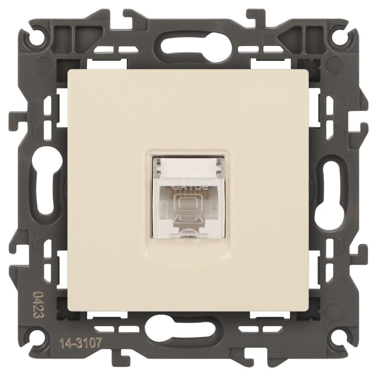Розетка интернет RJ45 серии Эра Elegance цвет слоновая кость 14-3107-02. Рамки приобретаются отдельно. Рамки Эра Elegance ПЛАСТИК: 1 пост 14-5001-хх, 2 поста 14-5002-хх, 3 поста 14-5003-хх, 4 поста 14-5004-хх, 5 постов 14-5005-хх; СТЕКЛО: 1 пост 14-5101-хх, 2 поста 14-5102-хх, 3 поста 14-5103-хх, 4 поста 14-5104-хх; МЕТАЛЛ: 1 пост 14-5201-хх, 2 поста 14-5202-хх, 3 поста 14-5203-хх, 4 поста 14-5204-хх; ДЕРЕВО: 1 пост 14-5301-хх, 2 поста 14-5302-хх, 3 поста 14-5303-хх, 4 поста 14-5304-хх (хх - код цвета: 00-прозрачный, 01-белый, белёный дуб, 02-слоновая кость, 03-алюминий, 04-шампань, 05-чёрный, чёрное дерево, 07-ясень, 09-дуб, 10-венге, 11-клён, 14-медь, 21-жёлтый, 22-оранжевый, 23-красный, 25-бордо, 26-лайм, 27-зелёный, 28-голубой, 29-синий, 30-розовый, 31-мокко, 32-серый, 41-сталь, 42-титан).