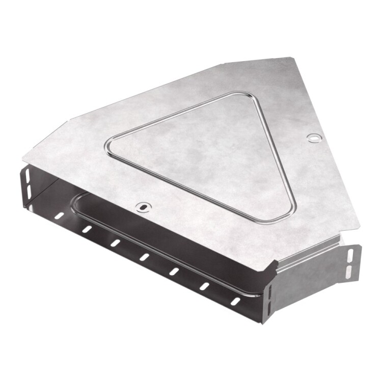 Аксессуары изготовленные из стали с защитным покрытием по методу Сендзимира – это изделия, на которых защитное цинковое покрытие было нанесено на листовую сталь перед изготовлением. Толщина защитного покрытия варьируется от 10 до 22мкм. Климатическое исполнение изделий УХЛ2, что предусматривают эксплуатацию в помещении и под навесом, при температуре эксплуатации от -80 до +150°С. Угол горизонталь ный 45 градусов предназначен для поворота кабельных трасс в горизонтальном направлении на 45 градусов, для перфорированных и глухих лотков. В комплект входит крышка.