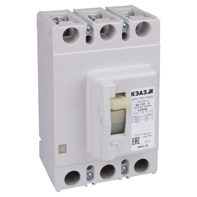 Силовой 3 полюсный автоматический выключатель постоянного тока в литом корпусе на номинальный ток 125 А.