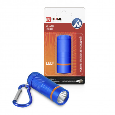 LED фонарь-брелок KL 61B ТМ IN HOME изготовлен в форме компактного алюминиевого цилиндра длиной 55 мм со светодиодом и карабином. Функционирует в одном режиме от батареек, которые идут в комплекте. Срок службы составляет 30 000 часов. Цветовая температура - 3000 К. Фонарь незаменим в местах с ограниченным освещением: подъезды, подвалы, лестничные пролеты, погреба и прочее. Незаменим для подсветки в походах, поездках, на отдыхе, при выполнении несложного ремонта и прочих бытовых задач. Может носиться в связке ключей либо как отдельный аксессуар.