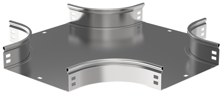 Крестовина плавная предназначена для организации X-образного ответвления кабельной трассы. Крышка аксессуара в комплект не входит. Аксессуар изготовлен из стали горячего цинкования методом Сендзимира (защитный слой цинка не менее 10 мкм).