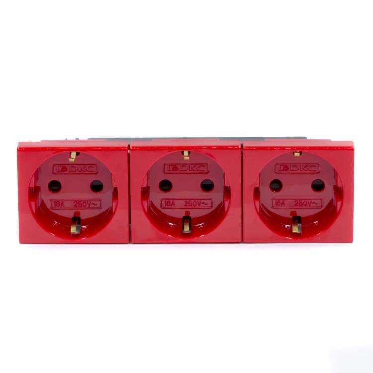 Электрические розетки, штекерные, с заземлением и со шторками, моноблок тройной. Назначение- подключение оргтехники, бытовых приборов и т. п.,экономия времени на подключении кабеля 60 %. Характеристики- в блоке всего 3 клеммы для подключения кабеля – все 3 розетки подключаются одной клеммой,имеется заземление,диаметр отверстий для ввода кабелей ? 3 мм (по 2 отверстия на клемму),соответствие ПУЭ, пунк т 7.1.49 ? имеются автоматические закрывающиеся шторки,номинальный ток – 16 А (на весь блок),номинальное напряжение ? 250 B. Кол-во модулей- 6. Установочный размер- 45х150. Цвет- красный