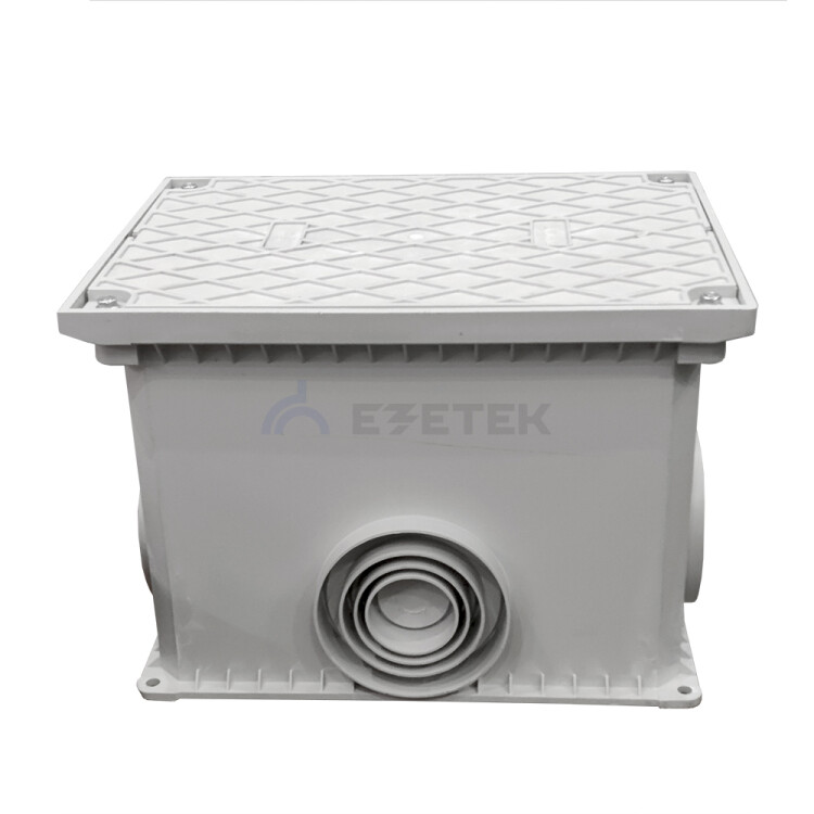 земли.Устройство имеет выбивные вводы для труб с четырех сторон - совместимый диаметр труб: 50 мм, 63 мм, 110 мм. Крышка усилена ребрами жесткости и выдерживает нагрузку до 700 кг.
