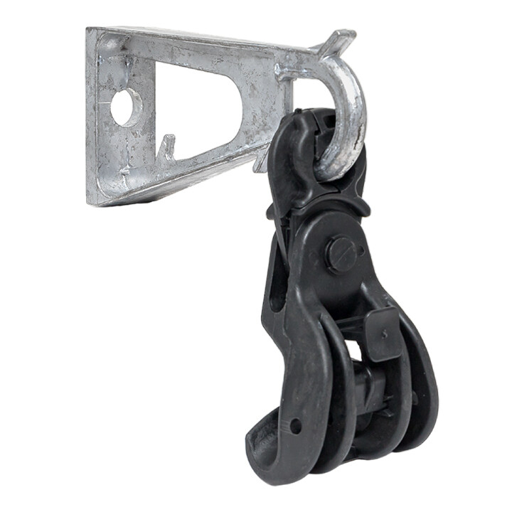 Комплект промежуточной подвески типа es-1500 предназначен для крепления изолированной несущей жилы СИП-2 на промежуточных опорах. Комплект состоит из промежуточного зажима и кронштейна. Кронштейн имеет выступ для фиксации раскаточного ролика. Монтаж осуществляется с помощью стальной бандажной ленты или болта. Комплект подвески устойчив к ультрафиолетовому и солнечному излучению, высоким и низ ким температурам, коррозии и агрессивным атмосферным воздействиям.