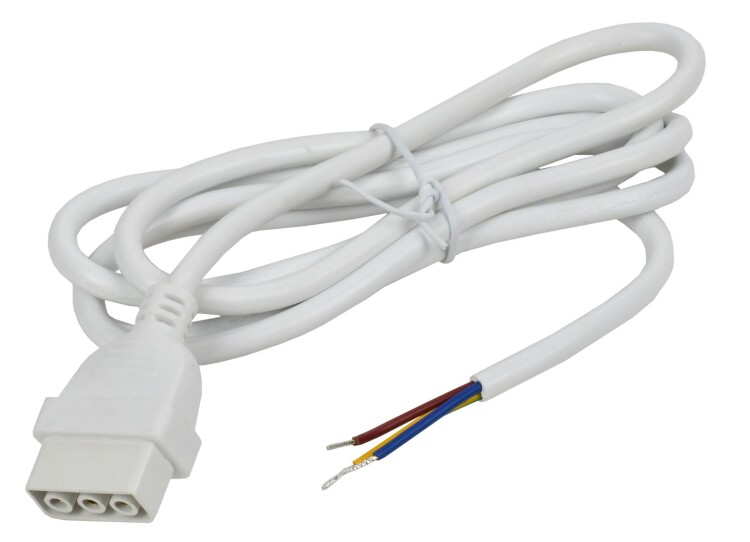Кабель питания белого цвета с сечением проводников 3*0,75. Длина кабеля составляет 1,5 м. Применяется для подключения к сети линейных светильников серии 1020, 1022.