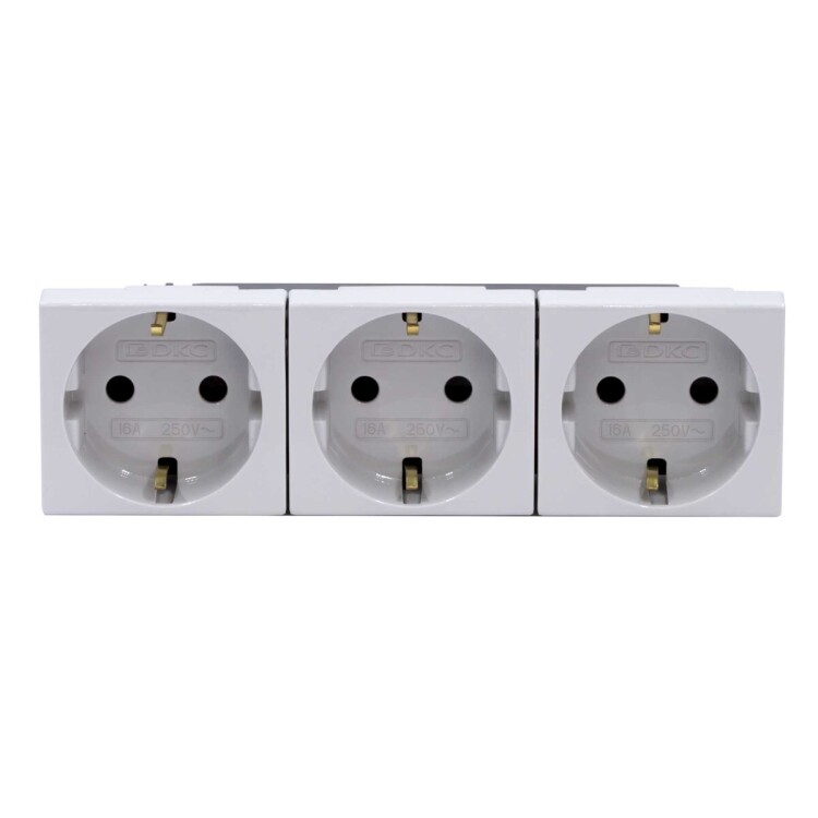 Электрические розетки, штекерные, с заземлением и со шторками, моноблок тройной. Назначение- подключение оргтехники, бытовых приборов и т. п.,экономия времени на подключении кабеля 60 %. Характеристики- в блоке всего 3 клеммы для подключения кабеля – все 3 розетки подключаются одной клеммой,имеется заземление,диаметр отверстий для ввода кабелей ? 3 мм (по 2 отверстия на клемму),соответствие ПУЭ, пунк т 7.1.49 ? имеются автоматические закрывающиеся шторки,номинальный ток – 16 А (на весь блок),номинальное напряжение ? 250 B. Кол-во модулей- 6. Установочный размер- 45х150. Цвет- серый