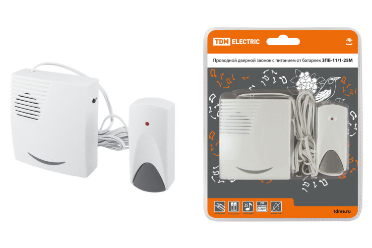 Звонки упакованы в яркую блистерную упаковку, оформленную в корпоративных цветах TDM ELECTRIC, на каждом блистере есть информационные пиктограммы с характеристиками звонков.