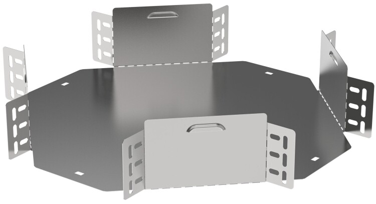 Крестовина предназначен для организации X-образного разветвления кабельной трассы в горизонтальной плоскости. Аксессуар поставляется в плоском виде, имеет направляющую перфорацию для сгиба и сборки изделия перед установкой. Стыковка аксессуара с лотком осуществляется за счёт телескопического соединителя. Подходит для всех типов листовых лотков серии ESCA. Крышка на аксессуар заказывается отдельно. Аксессуар изготовлен из стали оцинкованной методом Сендзимира (защитный слой цинка не менее 5-10 мкм).