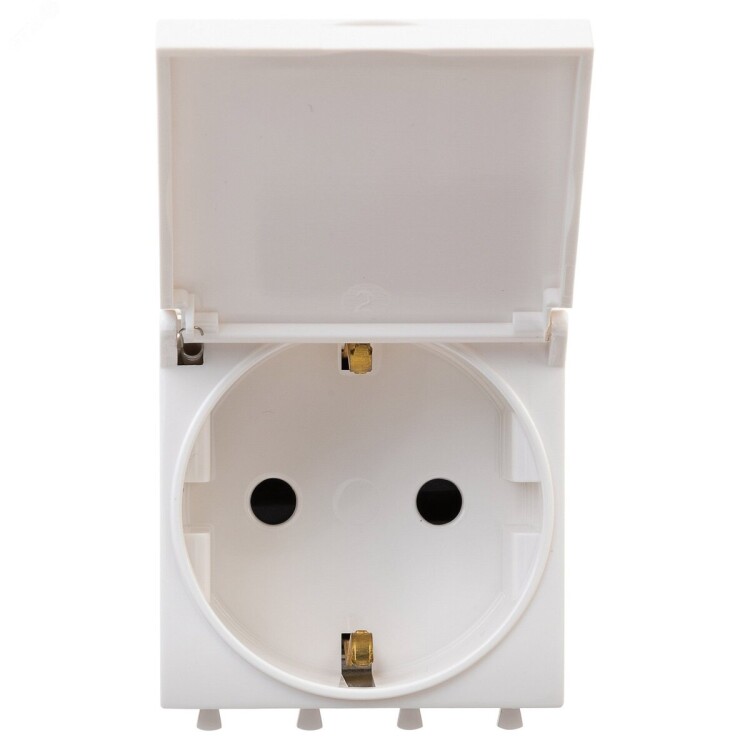 Розетка 2P+E (однофазная розетка с заземлением) модульная с крышкой от ДКС применяется для подключения различных электроприборов. Изделие предназначено для монтажа в систему пластиковых коробов ""In-liner Front"" и систему организации рабочих мест ""Sotto"" при помощи рамок-суппортов и каркасов ""Avanti"" (код 4400912 и т.д.). Лаконичные формы электроустановочных изделий ""Avanti"" отлично сочетаются с их глубокими цветами. Пластиковые части устройства имеют оттенок ""Белое облако"". Это классический цвет, который легко сочетается с любыми оттенками в интерьере. Производитель оставляет за собой право вносить во внешний вид изделия изменения, которые не влияют на его функционал, безопасность и надежность.