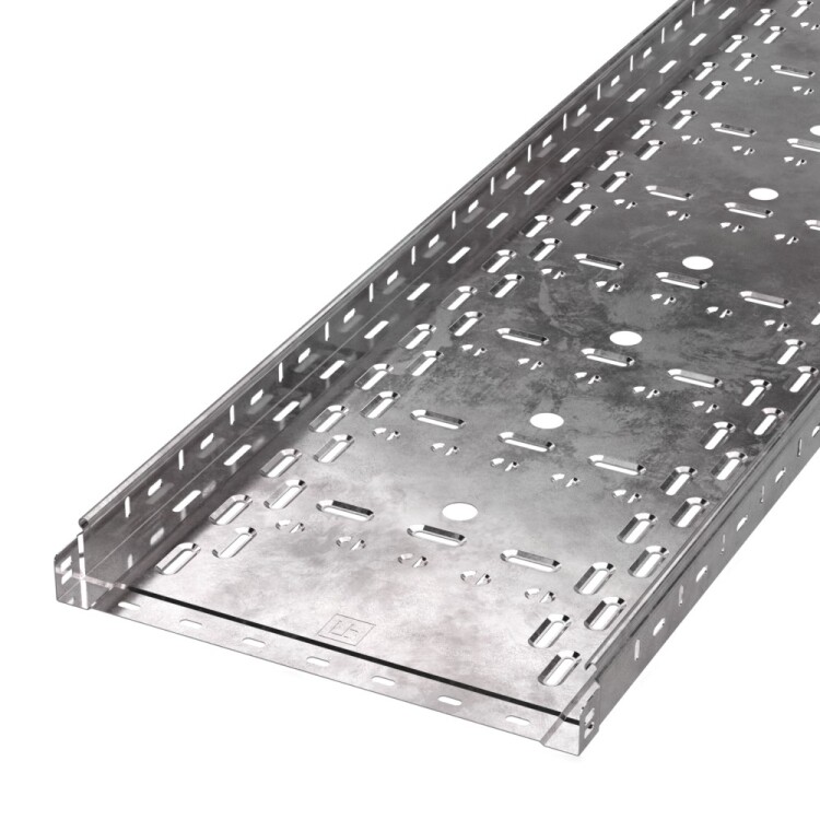 Система металлических лотков изготовленных из стали с защитным покрытием по методу Сендзимира – это изделия, на которых защитное цинковое покрытие было нанесено на листовую сталь перед изготовлением. Толщина защитного покрытия варьируется от 10 до 22мкм. Климатическое исполнение изделий УХЛ2, что предусматривают эксплуатацию в помещении и под навесом, при температуре эксплуатации от -80 до +150°С.