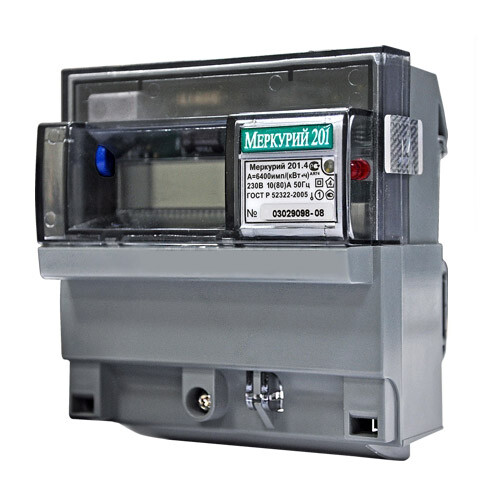 Счетчик 1ф. 1т. меркурий 201.22 (5-60А ЖКИ дин. рейка)