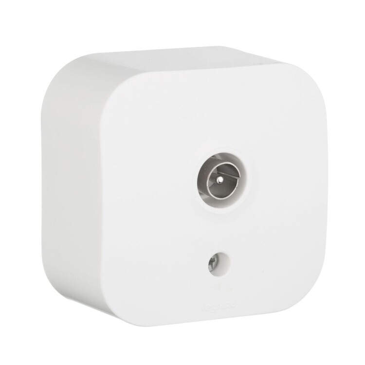 ТВ-розетка тип "звезда" QUTEO. Используется для подключения одного ТВ приемника к антенне, а также для организации телевизионной сети по схеме "звезда", когда к каждому телевизору прокладывается своя линия от источника сигнала.