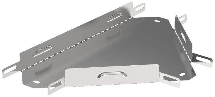 Разветвитель Т-образный горизонтальный предназначен для организации Т-образного ответвления кабельной трассы в горизонтальной плоскости. Аксессуар поставляется в плоском виде, имеет направляющую перфорацию для сгиба и сборки изделия перед установкой. Стыковка аксессуара с лотком осуществляется за счёт телескопического соединителя. Подходит для всех типов листовых лотков серии ESCA. Крышка на аксессуар заказывается отдельно. Аксессуар изготовлен из стали оцинкованной методом Сендзимира (защитный слой цинка не менее 5-10 мкм).
