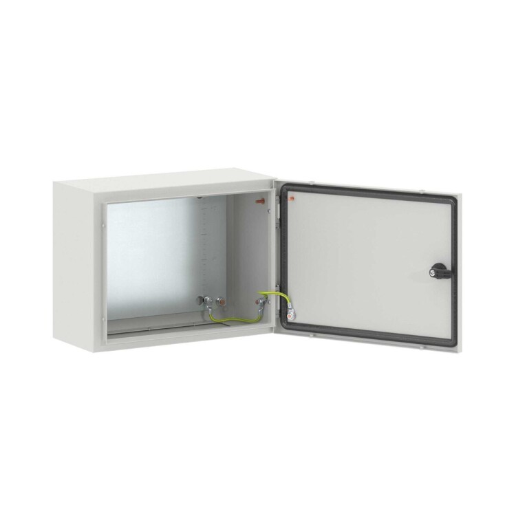 Навесные корпуса STE предназначены для систем автоматизации и распределения электроэнергии. Корпус, дверь, фланец STE изготавливаются из стали толщиной 1,5 мм с атмосферостойким порошковым покрытием, цвет RAL7035. Монтажная плата – из оцинкованной стали 1,8 мм. Корпуса выполнены по технологии сварки из единого листа металла, что обеспечивает высокую нагрузочную способность и защиту от вибраций. Степень защиты IP66, ударопрочность IK10, сейсмостойкость 9 баллов по шкале MSK-64, климатическое исполнение УХЛ1, ОМ2, ОМ3, группа горючести Г1. Комплект поставки – корпус, дверь реверсивная, монтажная плата, поворотный замок 1 шт., сплошной фланец для ввода кабеля 1 шт., комплект заземления с проводами заземления. Габариты 300x400x200 (ШхВхГ) мм.
