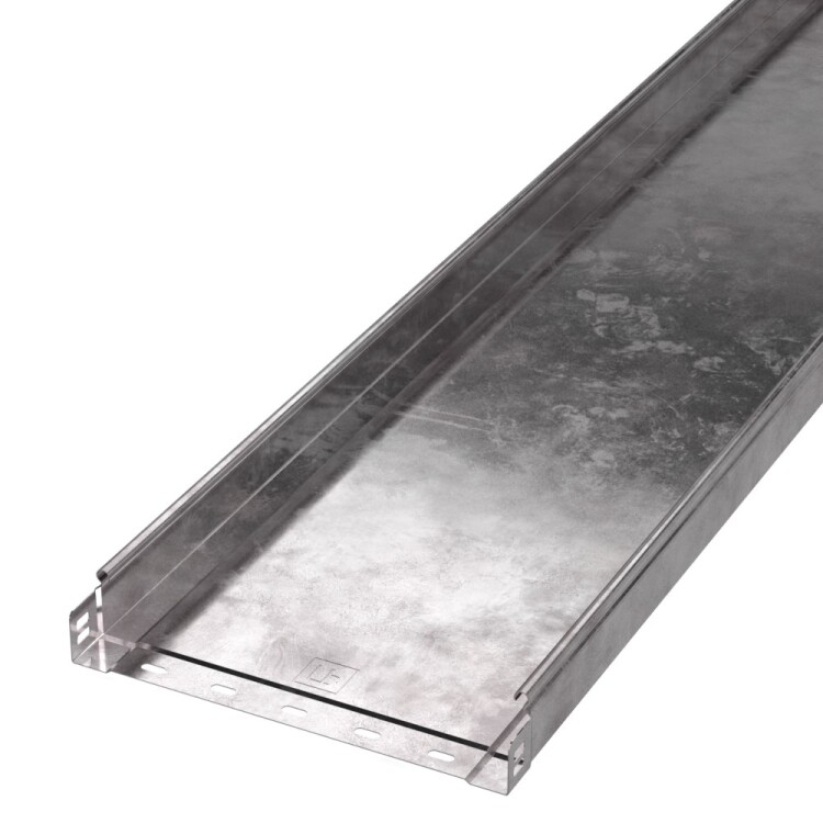Система металлических лотков изготовленных из стали с защитным покрытием по методу Сендзимира – это изделия, на которых защитное цинковое покрытие было нанесено на листовую сталь перед изготовлением. Толщина защитного покрытия варьируется от 10 до 22мкм. Климатическое исполнение изделий УХЛ2, что предусматривают эксплуатацию в помещении и под навесом, при температуре эксплуатации от -80 до +150°С.