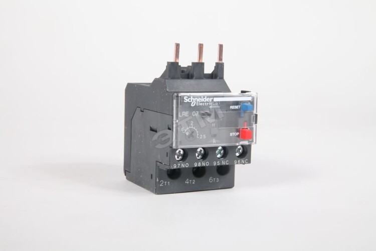 Тепловые реле перегрузки серии LRE EasyPact TVS Schneider Electric, 3Р, диапазон уставок тока (1.0 - 1.6) A, класс срабатывания 10A, номинальное напряжение до 690 В 50/60 Гц, степень защиты IP20. Реле предназначены для защиты цепей и электродвигателей от перегрузок, обрыва фазы, превышения длительности пуска и заклинивания ротора. Реле LRE применяются совместно с контакторами серии LC1E. Реле поставляются с переключателем режимов, защищенным крышкой, в положении ручного возврата.