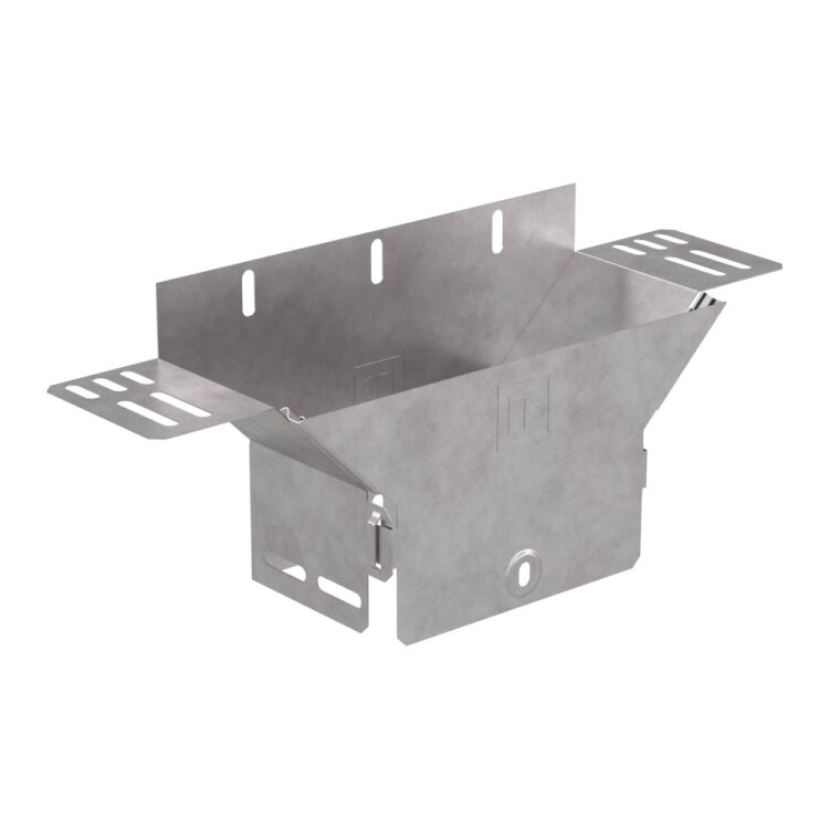 Аксессуары изготовленные из стали с защитным покрытием по методу Сендзимира – это изделия, на которых защитное цинковое покрытие было нанесено на листовую сталь перед изготовлением. Толщина защитного покрытия варьируется от 10 до 22мкм. Климатическое исполнение изделий УХЛ2, что предусматривают эксплуатацию в помещении и под навесом, при температуре эксплуатации от -80 до +150°С. Обеспечивает вертикальное ответвление горизонтальной кабеленесущий линии, состоящей из лотков металлических.