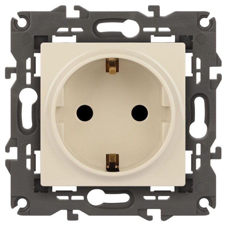Розетка с заземлением со шторками Эра Elegance слон.кость 14-2102-02. Оснащёна автоматическими клеммами для надёжной фиксации жил кабеля в механизме. Рамки приобретаются отдельно. Рамки Эра Elegance ПЛАСТИК: 1 пост 14-5001-хх, 2 поста 14-5002-хх, 3 поста 14-5003-хх, 4 поста 14-5004-хх, 5 постов 14-5005-хх; СТЕКЛО: 1 пост 14-5101-хх, 2 поста 14-5102-хх, 3 поста 14-5103-хх, 4 поста 14-5104-хх; МЕТАЛЛ: 1 пост 14-5201-хх, 2 поста 14-5202-хх, 3 поста 14-5203-хх, 4 поста 14-5204-хх; ДЕРЕВО: 1 пост 14-5301-хх, 2 поста 14-5302-хх, 3 поста 14-5303-хх, 4 поста 14-5304-хх (хх - код цвета: 00-прозрачный, 01-белый, белёный дуб, 02-слоновая кость, 03-алюминий, 04-шампань, 05-чёрный, чёрное дерево, 07-ясень, 09-дуб, 10-венге, 11-клён, 14-медь, 21-жёлтый, 22-оранжевый, 23-красный, 25-бордо, 26-лайм, 27-зелёный, 28-голубой, 29-синий, 30-розовый, 31-мокко, 32-серый, 41-сталь, 42-титан).