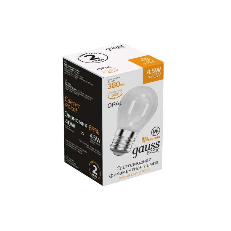 Светодиодные филаментные лампы GAUSS - это новейшие технологии в светотехнике. Лампы имеют привычный вид классических ламп накаливания, освещают пространство на 360о и дают больше света по сравнению с обычными светодиодными лампами за счет прозрачной колбы. Идеально подходят для хрустальных люстр и открытых светильников, а также для реализации дизайнерских решений, где важен вид классических ламп накаливания.