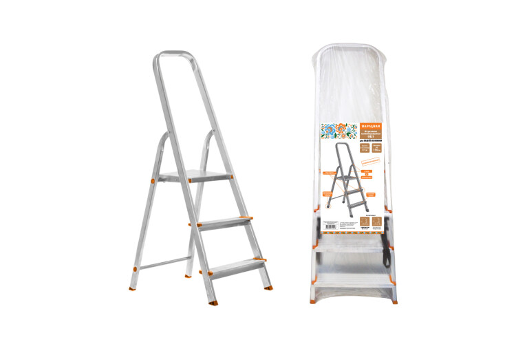 Преимущества: Для алюминиевых лестниц и стремянок - более широкий профиль, ступени, шесть заклепок.