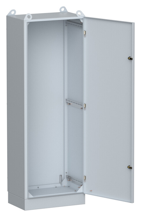 Сварной металлический корпус со съемной панелью. Дверца корпуса запирается на замок. Ключ замка имеет единый секрет.