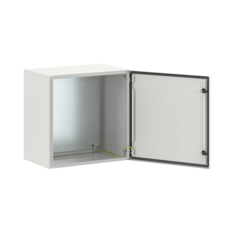 Навесные корпуса серии STE предназначены для систем автоматизации и распределения электроэнергии. Корпус, дверь, фланец серии STE изготавливаются из листовой стали толщиной 1,5 мм с атмосферостойким порошковым покрытием, цвет RAL7035. Монтажная плата изготовлена из оцинкованной стали толщиной 1,8 мм. Степень защиты IP66, ударопрочность IK10, сейсмостойкость 9 баллов по шкале MSK-64, климатическое исполнение УХЛ1, ОМ2, ОМ3, группа горючести Г1. Комплект поставки: корпус, дверь реверсивная, монтажная плата с двунаправленной разметкой, дверные рейки, поворотный замок 2 шт., сплошной фланец для ввода кабеля 1 шт., комплект заземления с проводами заземления. Габариты 600x600x400 (ШхВхГ) мм.
