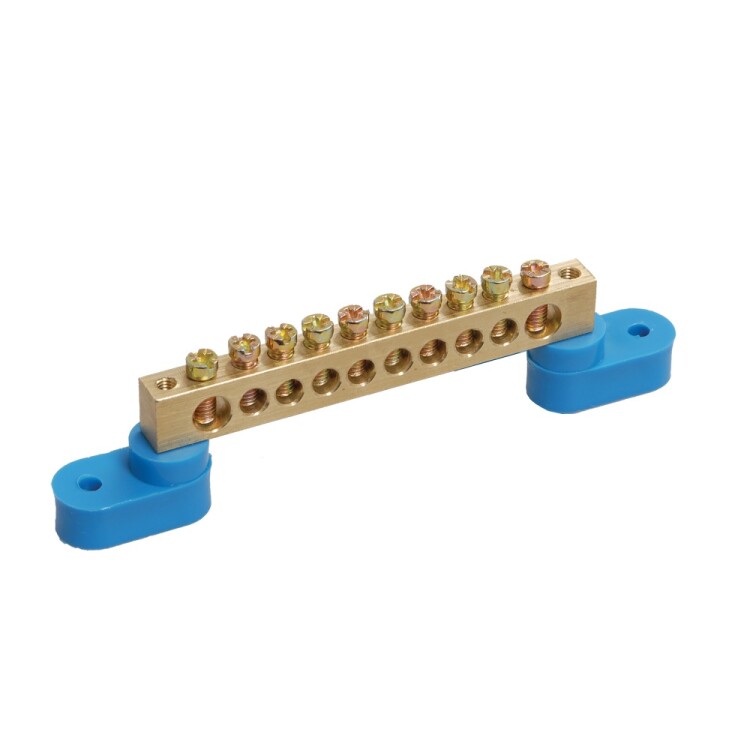 Шина "N" нулевая 6х9мм 10/2 (10 групп/крепеж по краям) с двумя угловыми изоляторами (10 шт/уп) Промр