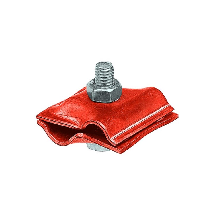 Зажим позволяет соединять пруток молниезащитной сетки и токоотводов