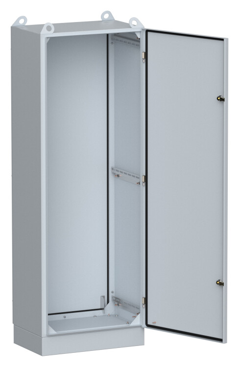 Сварной металлический корпус со съемной панелью. Дверца корпуса запирается на замок. Ключ замка имеет единый секрет.