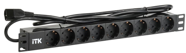 ITK PDU 9 розеток нем. ст, 1U, шнур 2м вилка С14 ПВХ чер