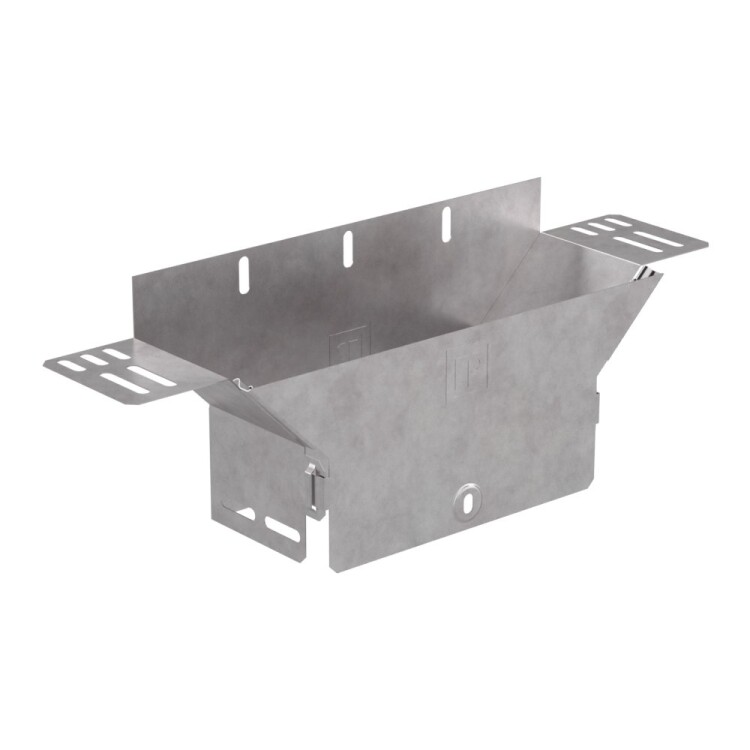 Аксессуары изготовленные из стали с защитным покрытием по методу Сендзимира – это изделия, на которых защитное цинковое покрытие было нанесено на листовую сталь перед изготовлением. Толщина защитного покрытия варьируется от 10 до 22мкм. Климатическое исполнение изделий УХЛ2, что предусматривают эксплуатацию в помещении и под навесом, при температуре эксплуатации от -80 до +150°С. Обеспечивает вертикальное ответвление горизонтальной кабеленесущий линии, состоящей из лотков металлических.