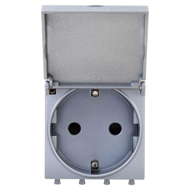 Розетка 2P+E (однофазная розетка с заземлением) модульная с крышкой от ДКС применяется для подключения различных электроприборов. Изделие предназначено для монтажа в систему кабельных коробов ""In-liner Front"" и систему организации рабочих мест ""Sotto"" при помощи рамок-суппортов и каркасов ""Avanti"" (код 4400912 и т.д.). Лаконичные формы электроустановочных изделий ""Avanti"" отлично сочетаются с глубокими цветами. Пластиковые части устройства имеют оттенок ""Закаленная сталь"". Это актуальный цвет с оттенком металла, который легко сочетается с другими, придавая им оттенок богемной утонченности. Производитель оставляет за собой право вносить во внешний вид изделия изменения, которые не влияют на его функционал, безопасность и надежность.