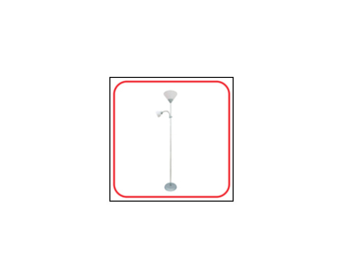 Светильник напольный с двумя плафонами ТНО 02, плафоном основного освещения Е27 и плафоном для чтения Е14, имеет прочный металлический корпус и устойчивое утяжеленное основание.