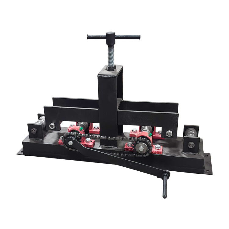 Арт. 77237. Выпрямитель прутка и полосы Выпрямитель прутка и полосы применяется при монтаже молниезащиты и заземления, перед началом использования необходимо убедиться, что все ролики свободно вращаются, при необходимости немного ослабить зажимные гайки роликов. Для выравнивания прутка, необходимо 0,5-1м предварительно выпрямить для того, чтобы его заправить в соответствующую канавку устройства. Подачу прутка из бухты необходимо выполнять так, чтобы бухта была выше по отношению к основанию устройства. Далее необходимо прижимным винтом опустить верхние ролики так, чтобы пруток немного изгибался в обратную сторону. При прокатывании прутка можно регулировать степень выпрямления, путем поджимания/ослабления верхних роликов. Перед каждым началом работ нужно проверить все элементы устройства. При использовании в условиях повышенной «запыленности» перед каждым применением смазать цепной привод, но не реже 1-го раза в месяц. Подтянуть цепь при значительном её провисании 1,5-3см.