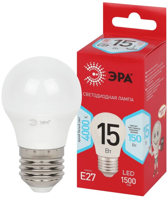 Эта светодиодная лампа ЭРА Серии Бюджет - современный, качественный и доступный источник света. Позволяет экономить до 90% электроэнергии по сравнению с лампой накаливания с аналогичным световым потоком. Светит ярким белым светом, который максимально приближен к естественному дневному. Идеальна для ежедневного применения в быту. Мгновенное включение. Ровное освещение. Можно использовать как с люстрами, так и со светильниками, в том числе настольными и бра.