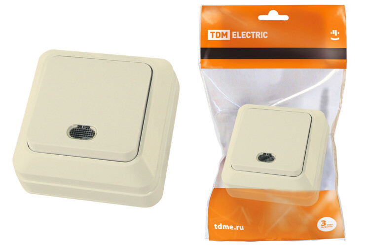 Выключатель одноклавишный открытой установки с подсветкой 10А слоновая кость "Ладога" TDM предназначен для: