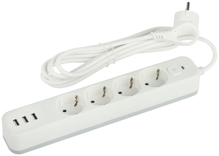 <p>Сетевой фильтр ЭРА USF-4es-1,5m-3xUSBA-W с заземлением, с выключателем, 4 розетки, 3USB, провод 1,5 м, ПВС 3x0,75мм2. Базовый уровень защиты техники: от импульсных помех, от перегрузки, от короткого замыкания. Максимальная мощность 10А/2200 Вт. Корпус из негорючего пластика (полипропилен). Вилка обеспечена кольцом для удобного извлечения ее из розетки. Выключатель со световой индикацией позволяет выключить все п риборы, подключенные к сетевому фильтру, не вынимая вилки из розетки. Отлично подойдет для защиты бытовой и компьютерной техники. Сетевой фильтр оснащен 3USB для зарядки мобильных устройств.</p>