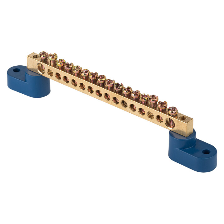 Шины предназначены для присоединения нулевых проводников (шина N) и заземления (шина PE). Шины выполнены из латуни и никелированной латуни. Нулевая шина устанавливается на изоляторе.