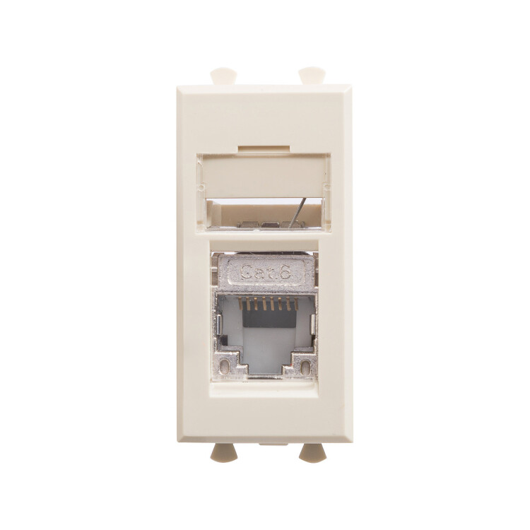 Компьютерная розетка RJ-45 модульная. Категория: 6, экранированная. Предназначена для монтажа в систему кабельных коробов ""In-liner Front"" и систему организации рабочих мест ""Sotto"" при помощи рамок-суппортов и каркасов ""Avanti"" (код 4400912 и т.д.). Используется для подключения сетевого кабеля к рабочему месту. Характеристики: 8P8C. С пылезащитной шторкой, с маркировочной табличкой. В комплекте разъем Keystone. Заделка не требует инструмента. Фиксация производится в подрозеточные коробки глубиной не менее 45 мм при помощи каркаса с лапками (код 4400802) и саморезов. 1 модуль. Цвет: ""Ванильная дымка""