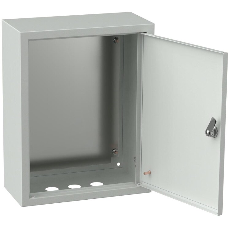 Металлический корпус со съемной монтажной панелью. Дверца корпуса запирается на замок. Ключ замка имеет единый секрет.
