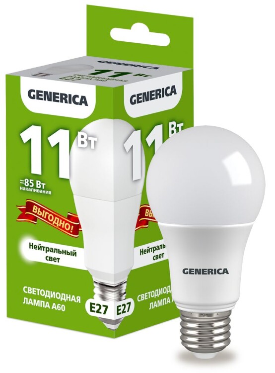 Лампа LED A60 груша 11Вт 230В 4000К E27 ПРОМО GENERICA
