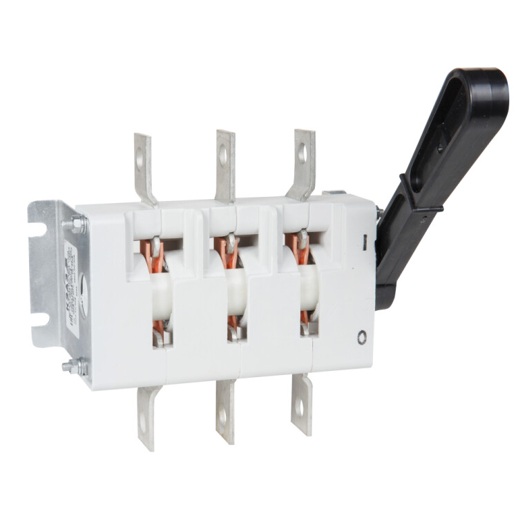 Выключатель-разъединитель 3 полюсный на номинальный ток 250 А, в котором установлена несъемная рукоятка. Преимущества: Конструкция контактной системы ножевого типа с двойным видимым разрывом цепи, Наличие вспомогательных контактов, Широкий выбор типоисполнений: по номинальному току, по виду ручного привода, по количеству направлений и полюсов, по расположению контактных выводов, Токоведущие э лементы изготовлены из высококачественной меди марки М1, Применение механически прочных и неподдерживающих горение пластических материалов, Корпус изготовлен из стеклонаполненного премикса, обладающего теплостойкостью, высокими прочностными и электроизоляционными свойствами.