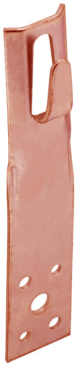 Монтируется на поверхности при помощи метизов. Фиксация проводника происходит при помощи зажима в «язычке» держателя. Материал корпуса - медь.