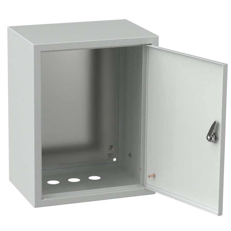 Металлический корпус со съемной монтажной панелью. Дверца корпуса запирается на замок. Ключ замка имеет единый секрет.
