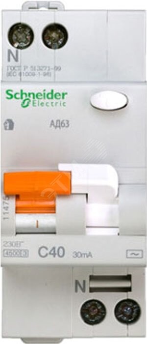 ДИФ. АВТ. ВЫКЛ. АД63 1П+Н 40A 30MA 4,5кА C АС, Испания