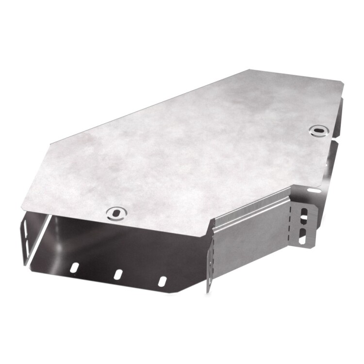 Аксессуары изготовленные из стали с защитным покрытием по методу Сендзимира – это изделия, на которых защитное цинковое покрытие было нанесено на листовую сталь перед изготовлением. Толщина защитного покрытия варьируется от 10 до 22мкм. Климатическое исполнение изделий УХЛ2, что предусматривают эксплуатацию в помещении и под навесом, при температуре эксплуатации от -80 до +150°С. Угол горизонталь ный 90 градусов предназначен для поворота кабельных трасс в горизонтальном направлении на 90 градусов, для перфорированных и глухих лотков. В комплект входит крышка.
