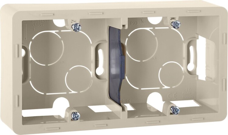 Коробка для накладного монтажа Inspiria, 2 поста, цвет "Слоновая кость". Коробка предназначена для накладного монтажа механизмов серии Inspiria и позволяет установить 2 механизма из данной коллекции. Конструкция коробки позволяет подключить провода наиболее удобным способом.